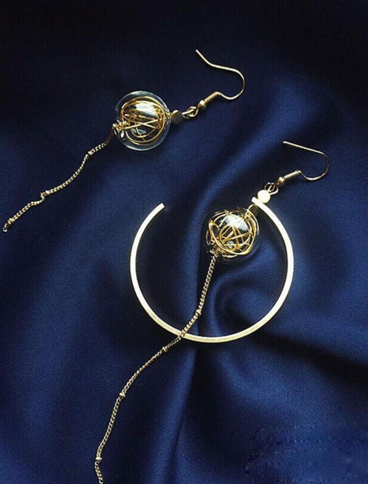 Durf anders te zijn met de Golden Orbit Mismatched Earrings.