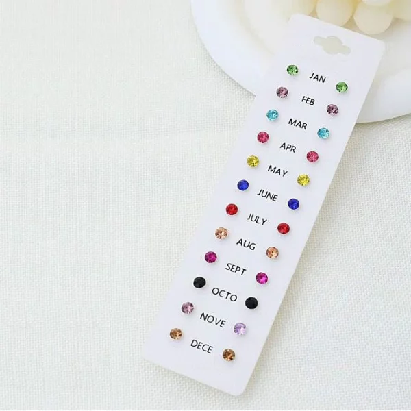 - 12 paar strass oorbellen, voor elke maand een andere kleur.